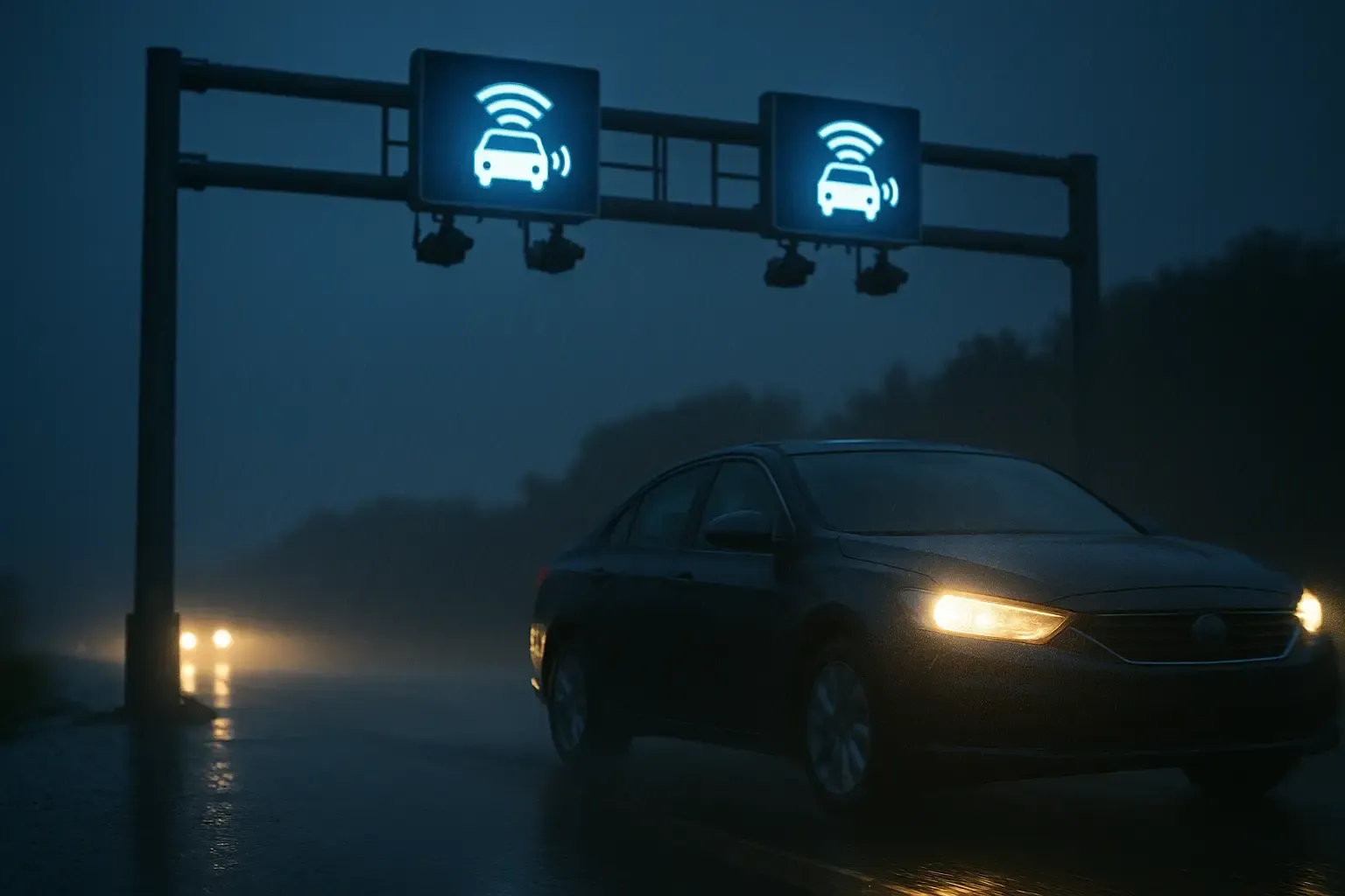 Imagine que cada pórtico é como um “pedágio invisível” com um sensor de semáforo inteligente. Quem tem um crachá eletrônico (tag) é identificado instantaneamente e a cancela virtual abre. Quem não tem crachá recebe depois uma conta pelo CPF da placa — mas com prazo e risco de multa se esquecer.