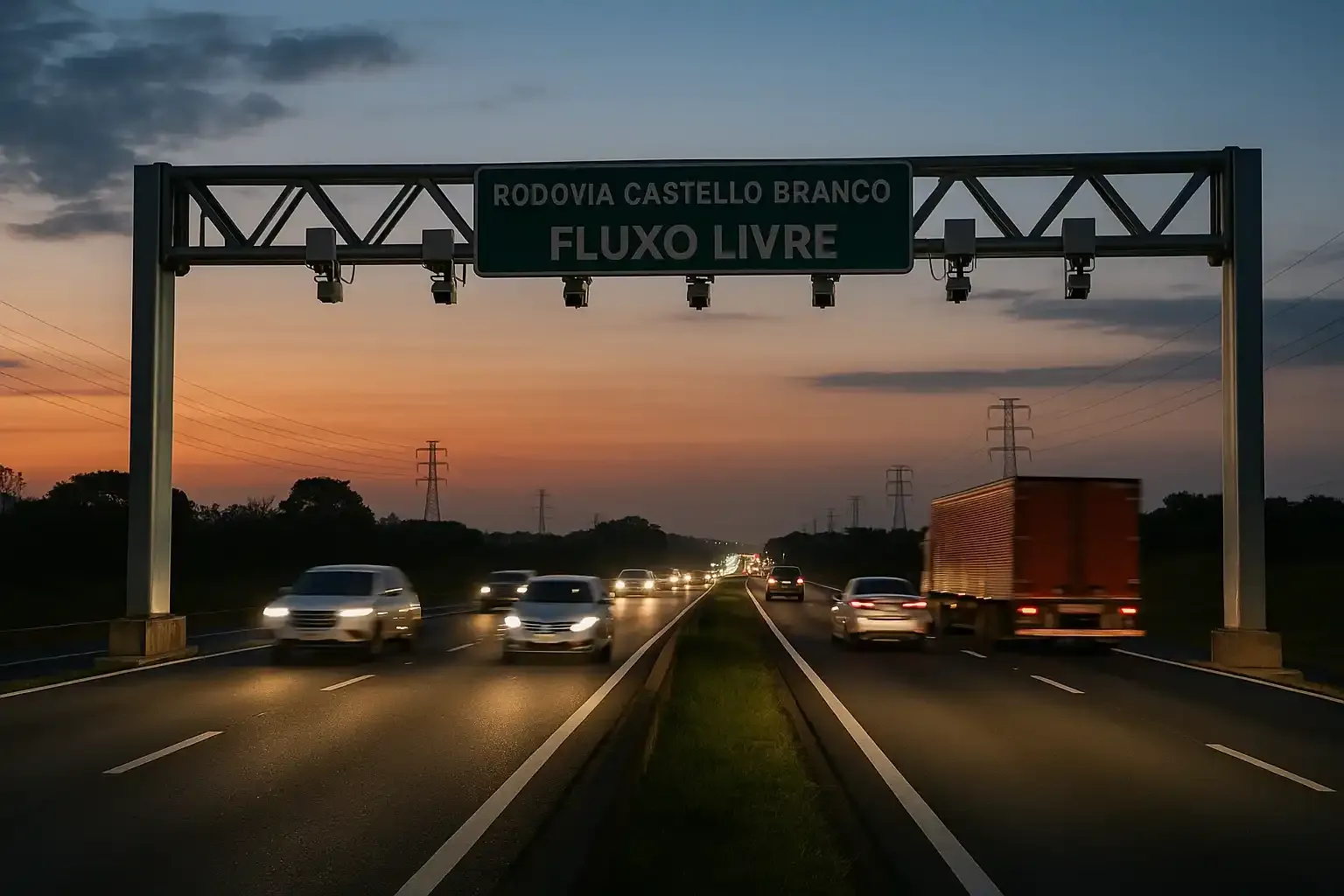 Paradas bruscas e trocas de faixa perto das cabines somam até 15% dos acidentes em trechos pedagiados, segundo concessionárias. Com pórticos a céu aberto, esses conflitos desaparecem.